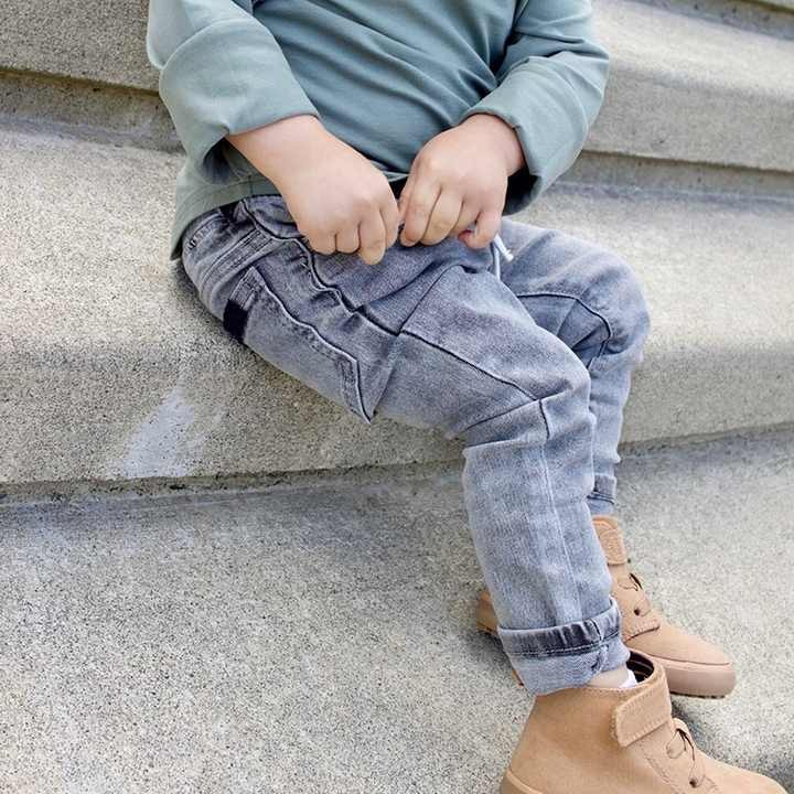 High quality customize elasticated waist loose straight light blue denim jeans for baby kids