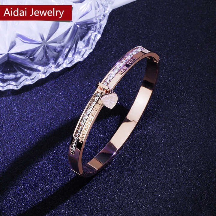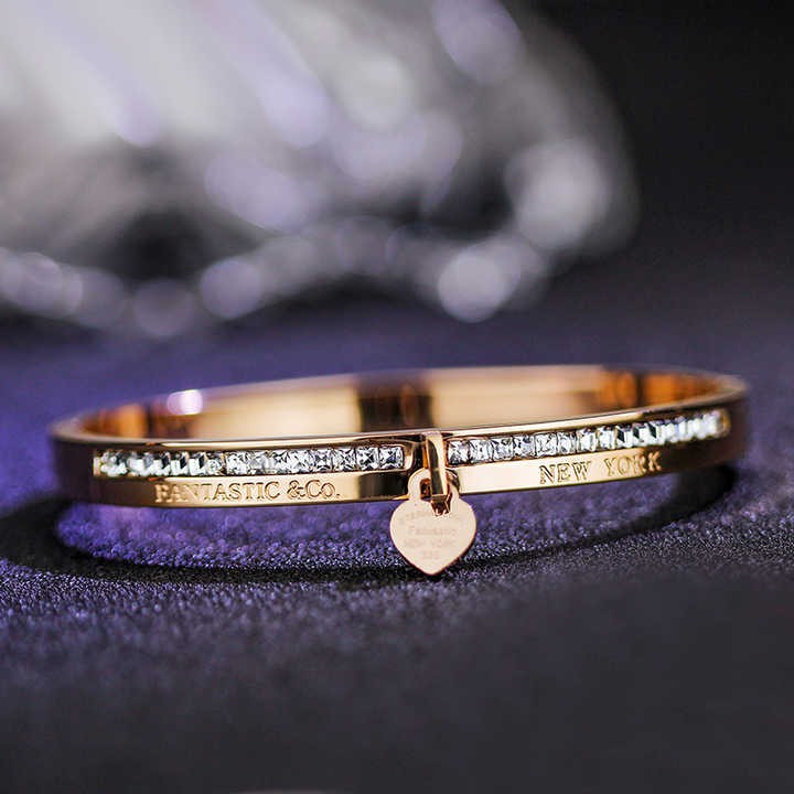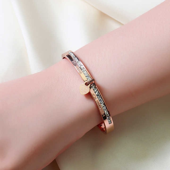 Hot Brand Jewelry Pulseira Rose Gold Stainless Steel Bracelets & Bangles Crystal Heart Forever